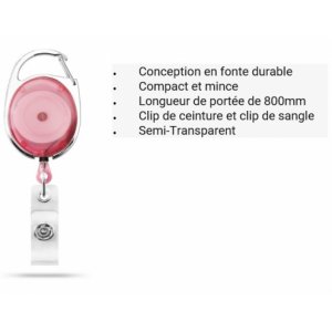 Description de AC217D-ST-PK - Zip rétractable RoseTranslucide avec accroche ceinture